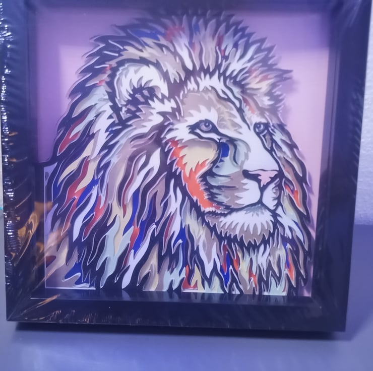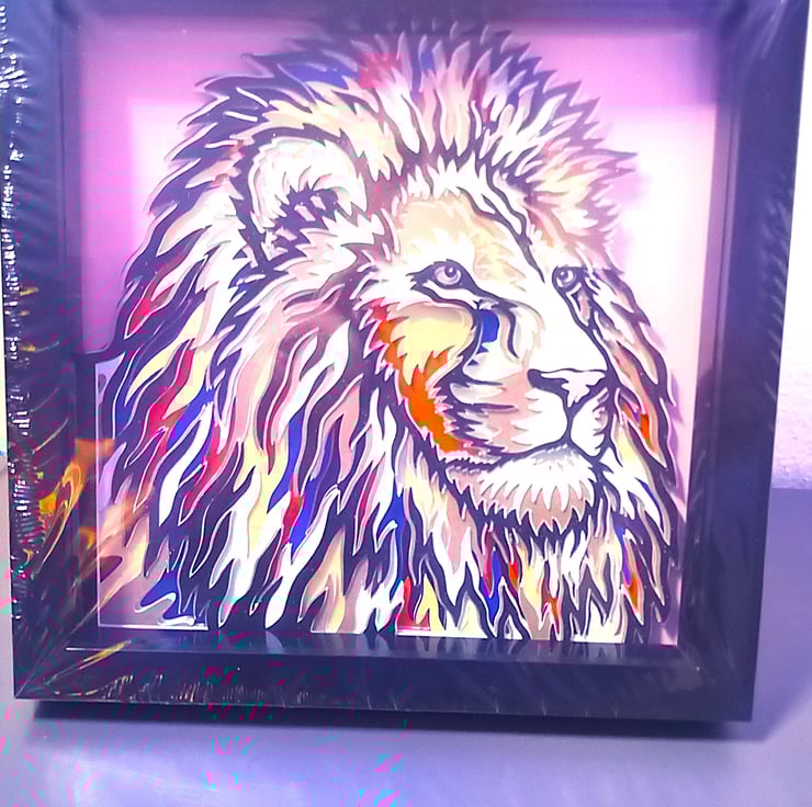 Proud Lion, Multicoloured decorative wall hanging, 3D art, Shadow art