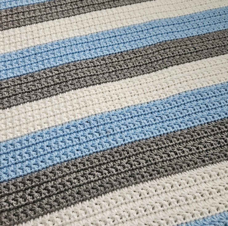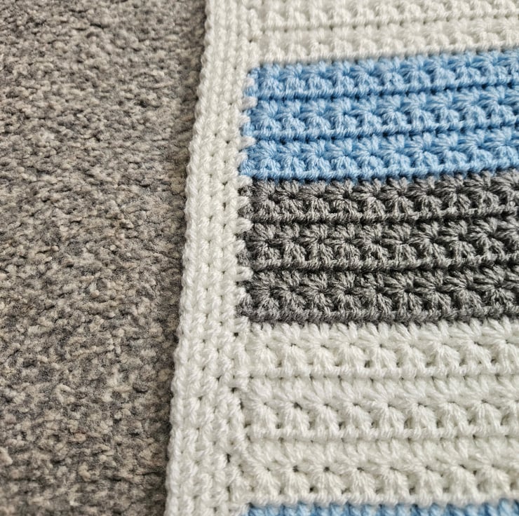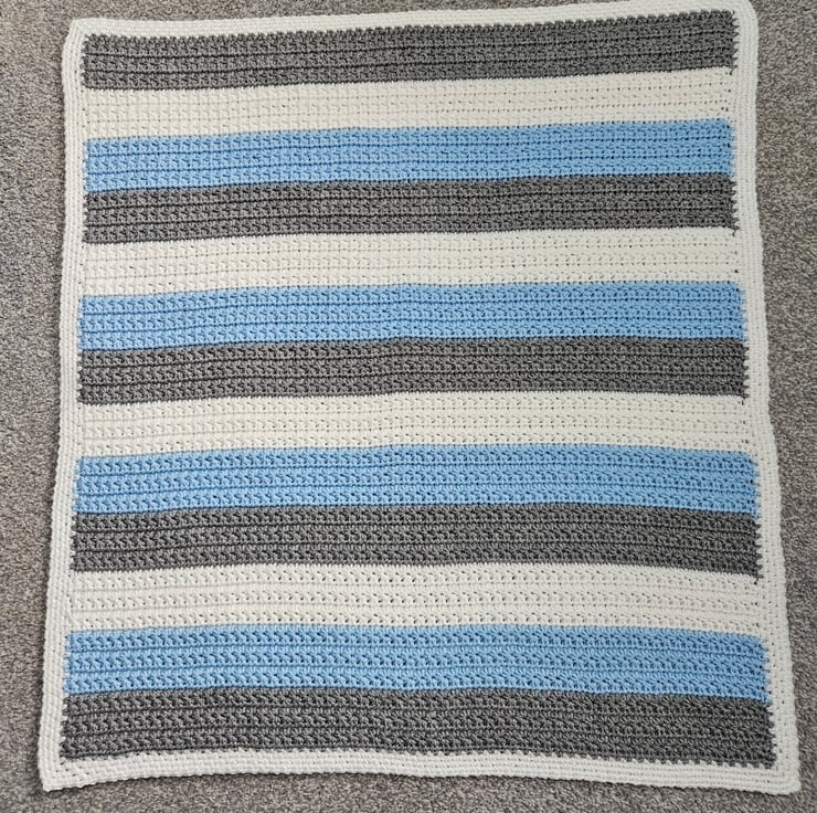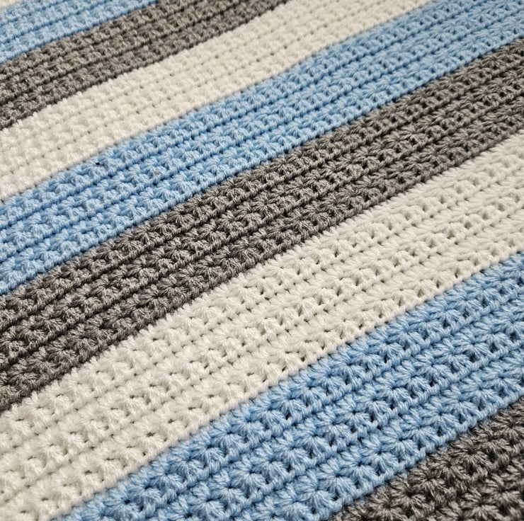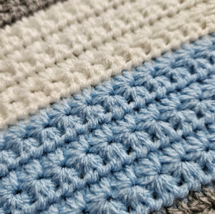 This baby blanket has been crafted using the elegant star stitch adding a touch of charm. It has been made with premium acrylic yarn, making it machine washable for convenience. Measuring approximately 29x26 inches (74x66 centimetres), this blanket is suitable for various uses including car seats and prams.