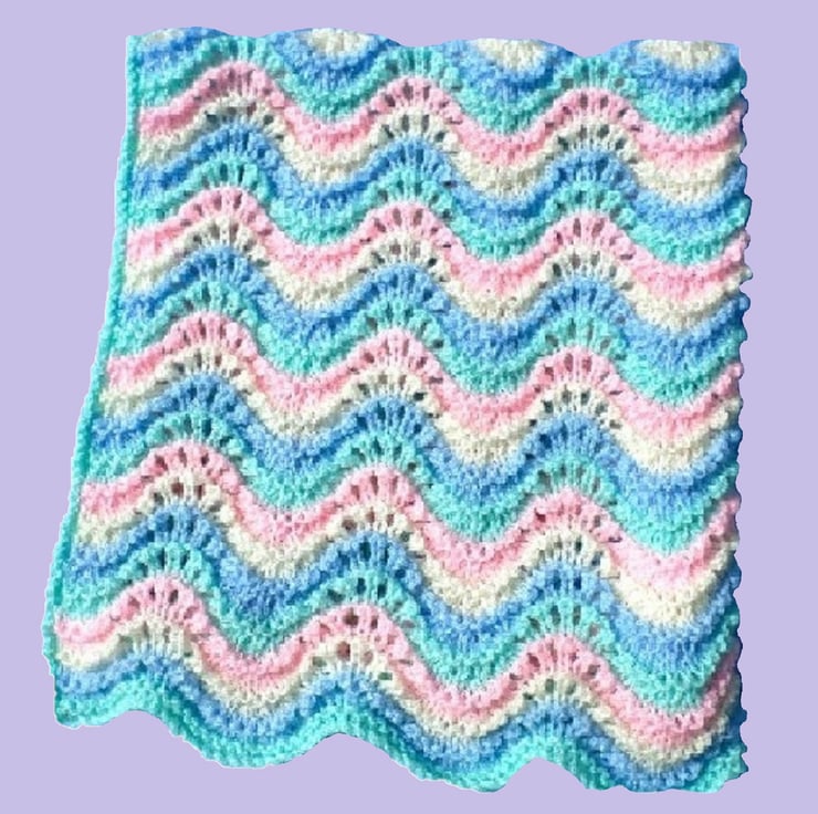 This hand knit PATTERN is for a blanket and cushion cover for Baby. Blanket measures 51 cm wide by 64.5 cm long or 20.25 inches wide by 25.25 inches long. It is knitted in double knitting yarn using 4.5 mm knitting needles. There is also a pattern for a cushion cover or pillow to match the blanket.