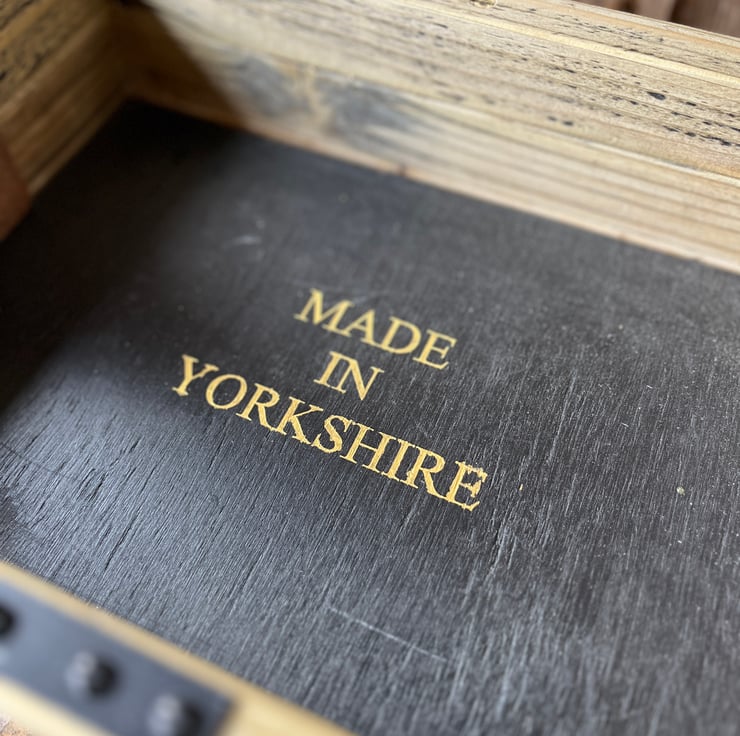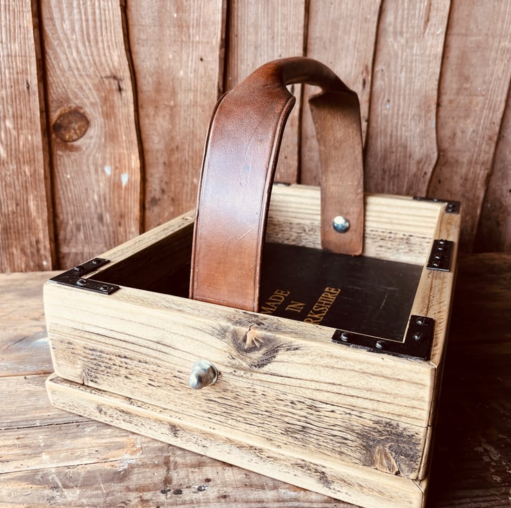 Rustic, battered and looking as if every second of its former life was an adventure. ( actually made this week in the Shed). It has the kind of look that just can’t be shop bought. Industrial metal fittings , 100year old leather handle which is date stamped 1918. Waxed and patinated A true one of a kind piece. And of course it’s made in Yorkshire. Use or admire. It’s your choice.