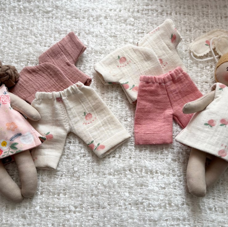 Each doll Comes with pyjama top with Velcro fastening and pyjama bottoms & a summer dress with Velcro fastening at back ,sleep mask with elastic