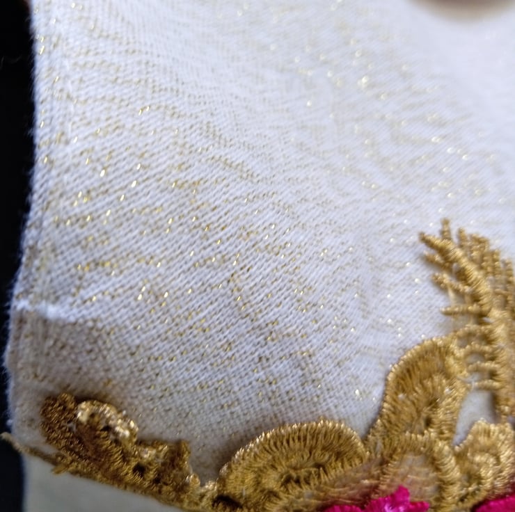 The fabric is cotton with gold lurex thread and it is very sparkly but the photos aren't picking it up.