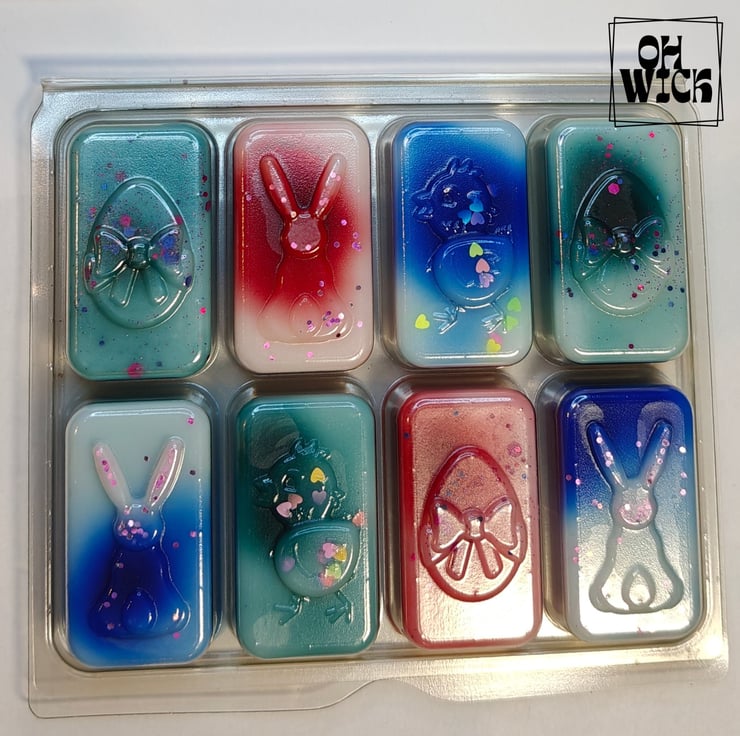 Say hello to spring in melt form! This clamshell of Berry Bunny Joy wax melts is packed with juicy, floral fragrance and handcrafted cuteness. Each of the 8 mini cubes is a tiny waxy masterpiece — no two are the same, but they all share the same irresistible scent.