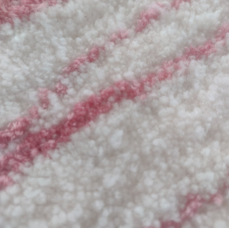 I wanted to create a bedside table rug that felt like more than just a surface — something that acts as a gentle focal point, a tactile layer that adds warmth and personality to a nightstand or small table. The coral pink and white stripes felt perfect for that — clean, cozy, and just a little playful.