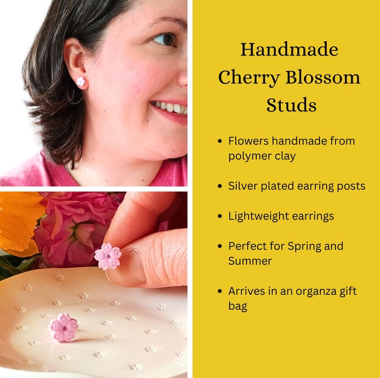 These Cherry Blossom stud earrings arrive in an organza gift bag, perfect as a treat for yourself or ready for gifting.