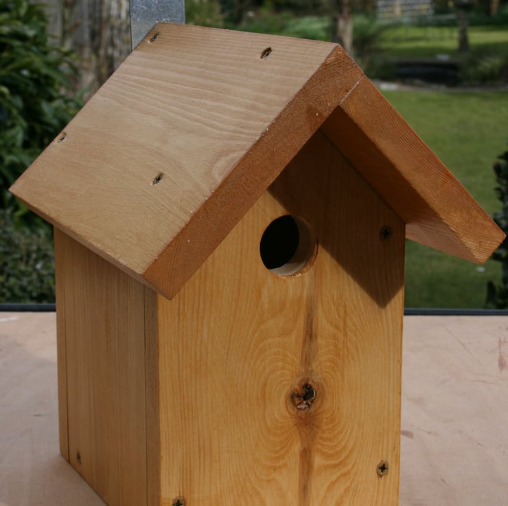 The nest box has been painted with a water based varnish to help protect the wood and should you want to change the colour or re-varnish please use a water based paint as this will not harm the birds.