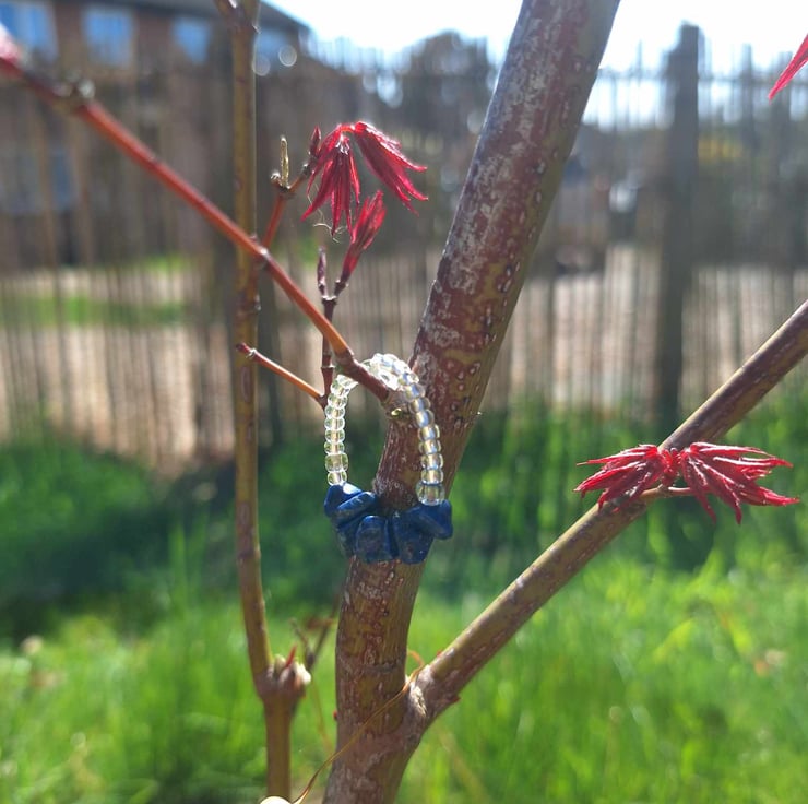 Sweet and simple, this ring is made from lapis lazulia chips and clear/silver seed beads for when your third eye is needing some love (or you just like the colour!)