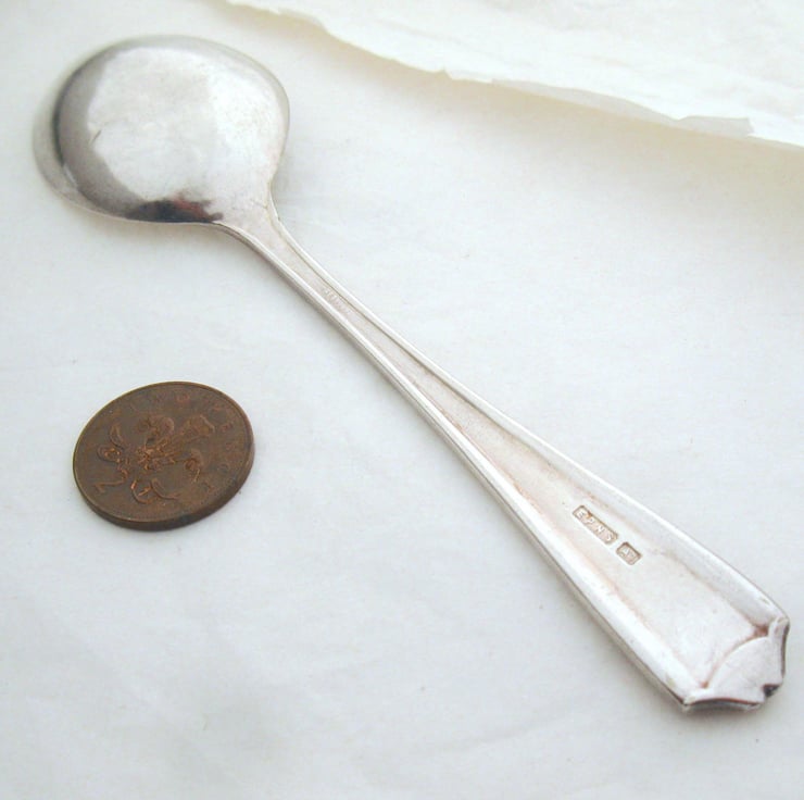 The spoon is approximately 18cm long. It is definitely starting to show its age, there are spots and marks and scratches as you can see in the photos, so it's in the bargain bin section although it's still a perfectly useable spoon whatever you might choose to eat with it!