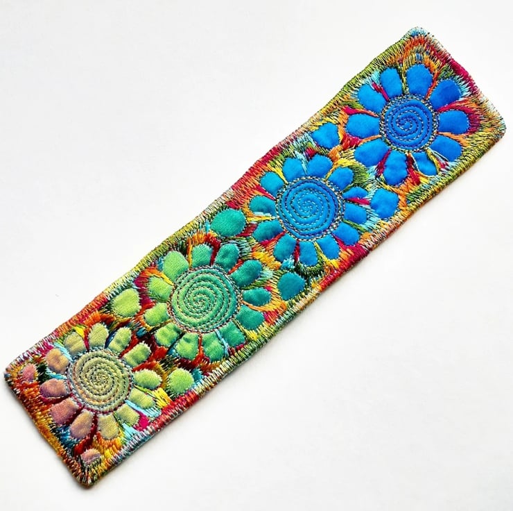 Made from layers of fabric including hand dyed Egyptian cotton and silk fabrics using the free machine embroidery style of sewing