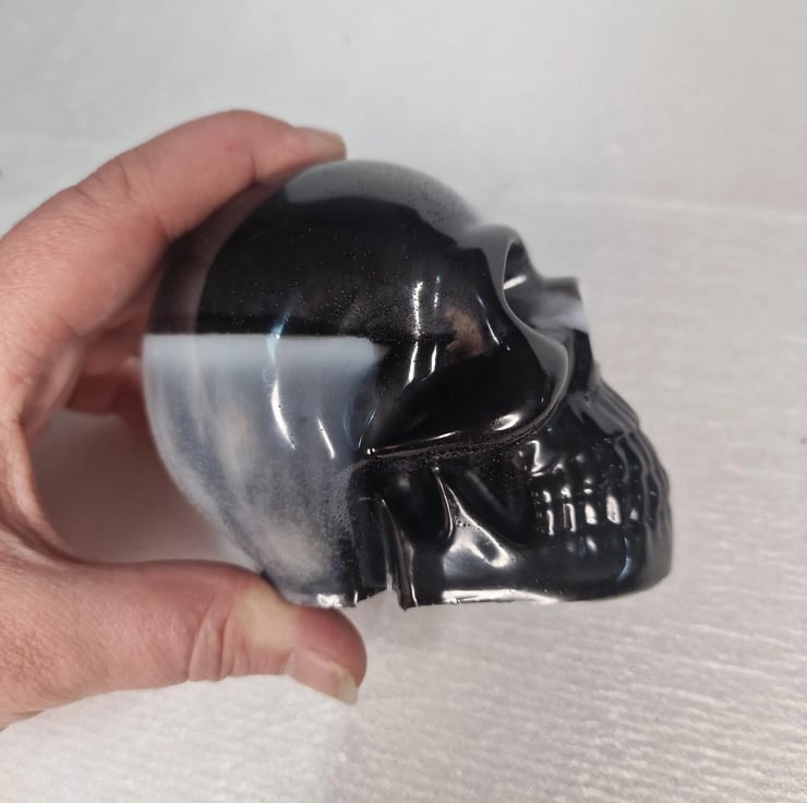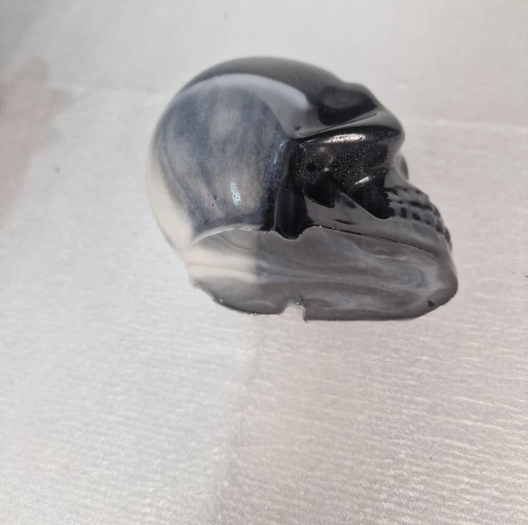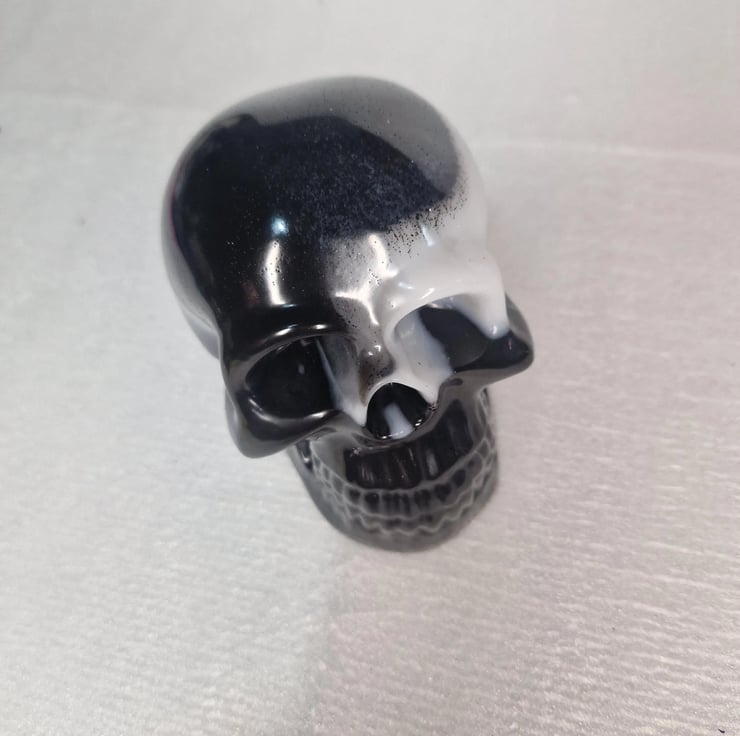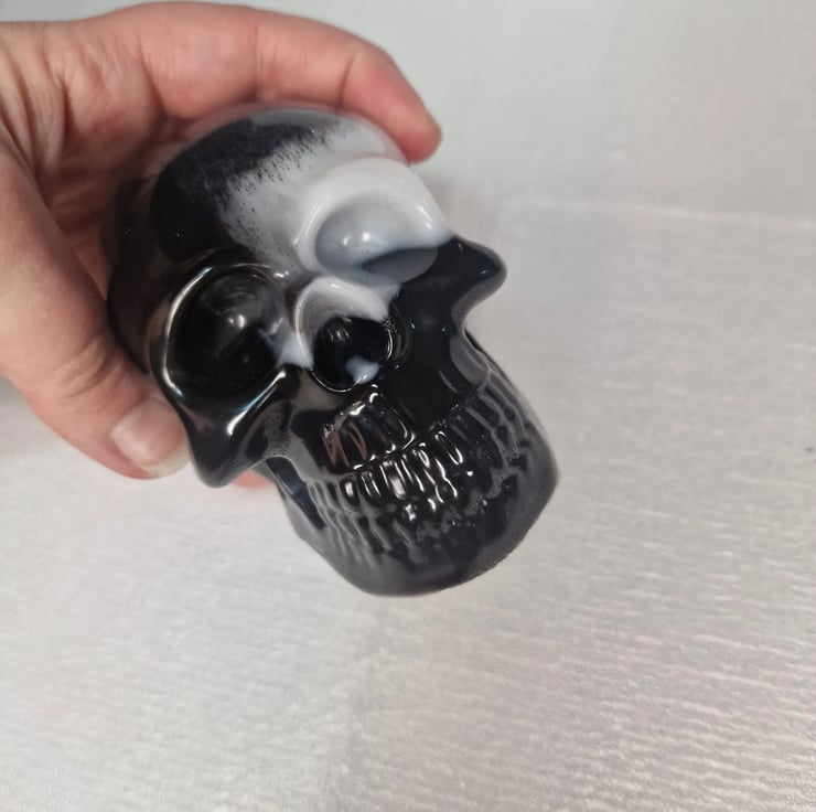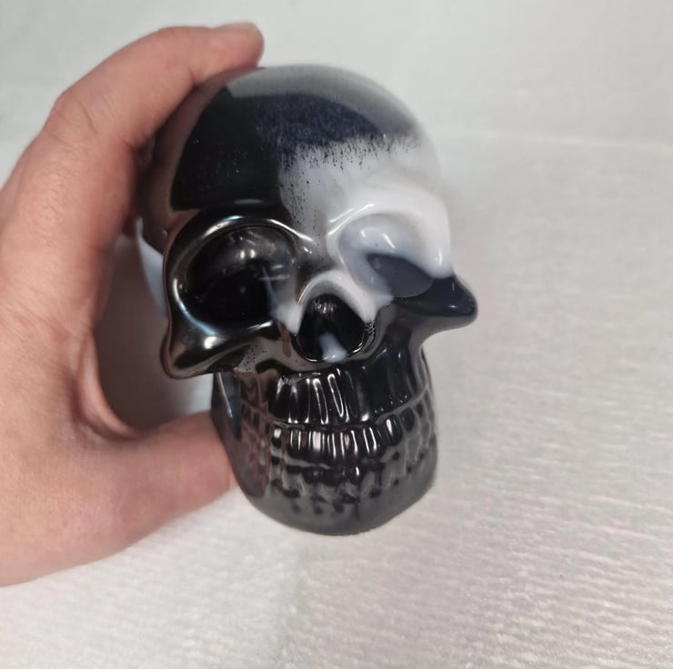 Large 9x8cm skull. Perfect for desks or ornaments. Black and white.