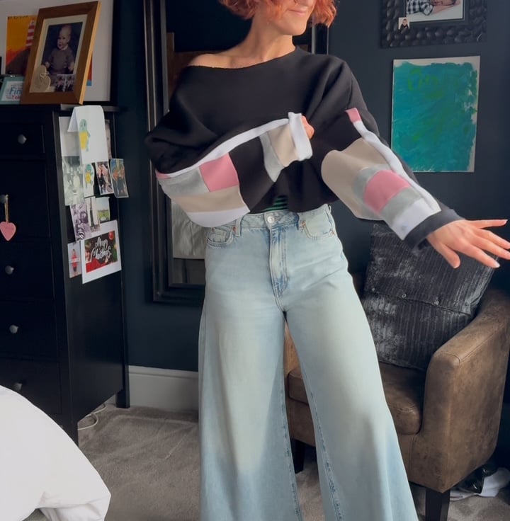 New sweater drop - our Molly Sweater's are back with a revamped, raw edge neckline - perfect, slouchy style.This one also has a raw edge waistline. Made from Oeko Tex Standard Polyester Cotton, finished with a brushed, fleece inside for extra comfort. These beautiful sweaters are all individual - each one is different finished with matching ribbing and a Violet logo.