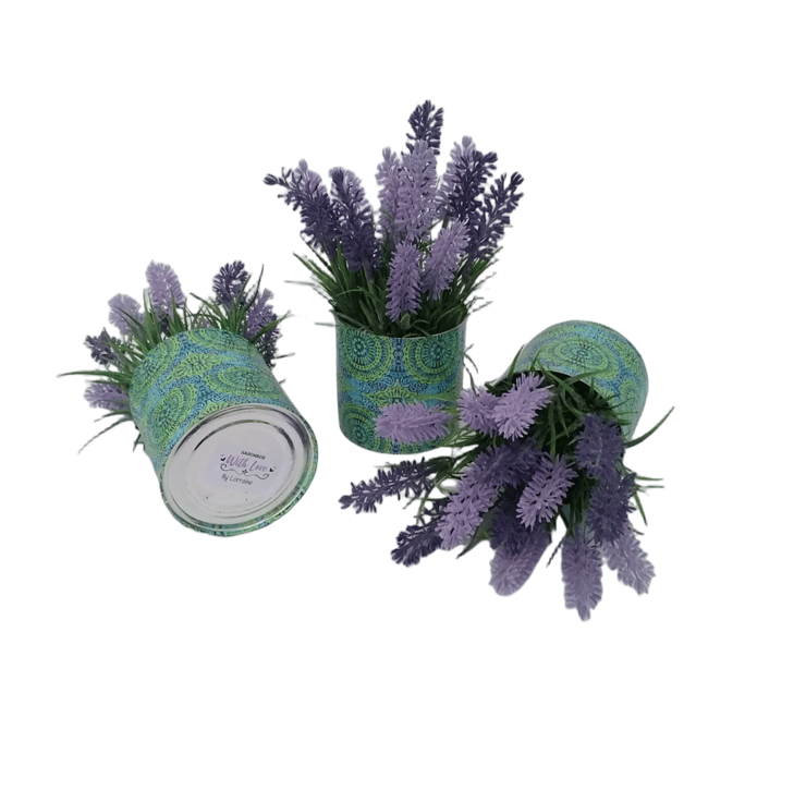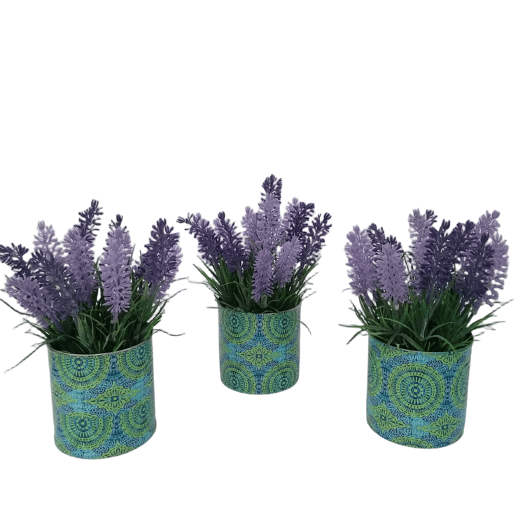 The tin is filled with realistic faux lavender stems in soft purple tones, for a fresh, calming look. Ideal as a rustic home accent, a thoughtful gift, or a quirky addition to your workspace.