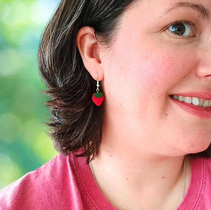 Strawberry Earrings, Red and Green, Fruit Jewellery