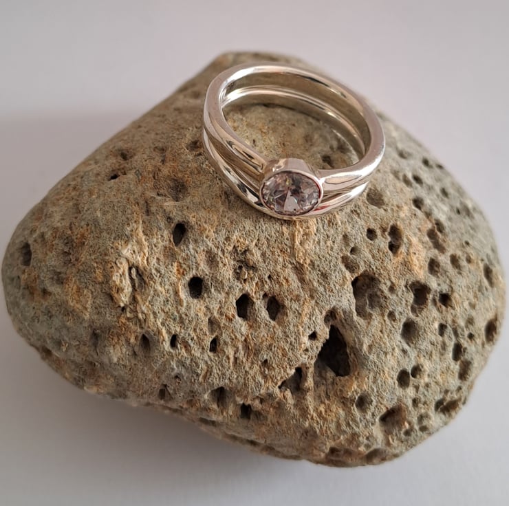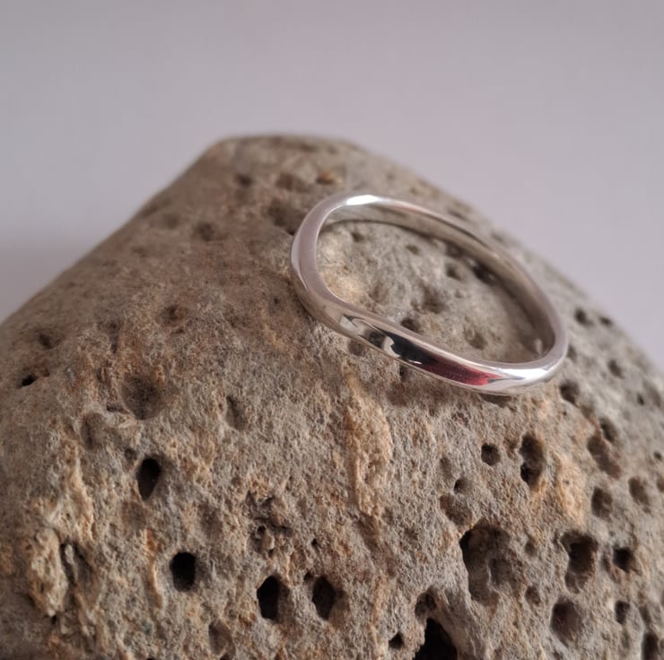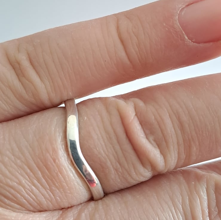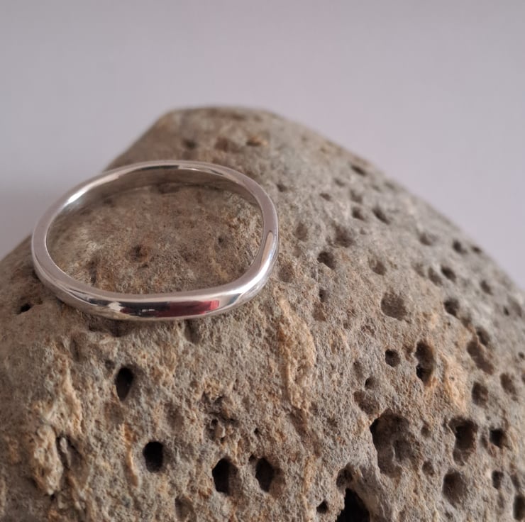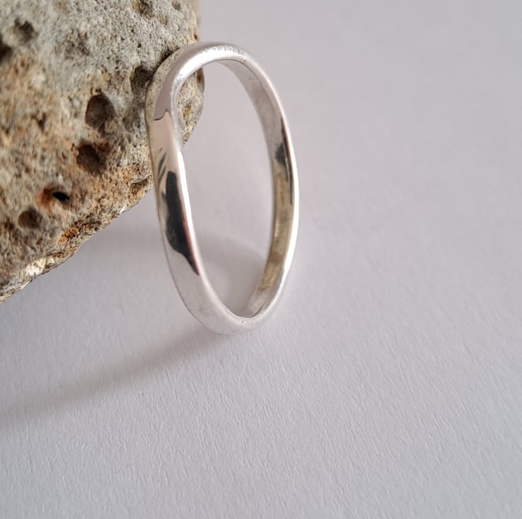 A simple classic, the flat wedding ring 2mm wide and curved to fit around the engagement ring. I make these to order , out of 100% recycled 9ct white gold, so do let me know what size you need. The rings are all hallmarked to assure the quality of the gold.