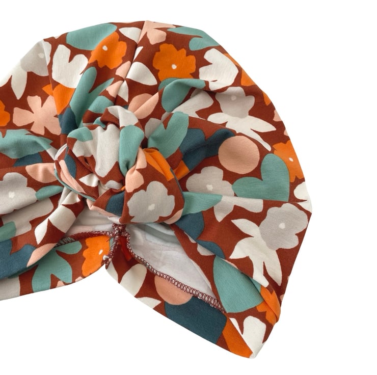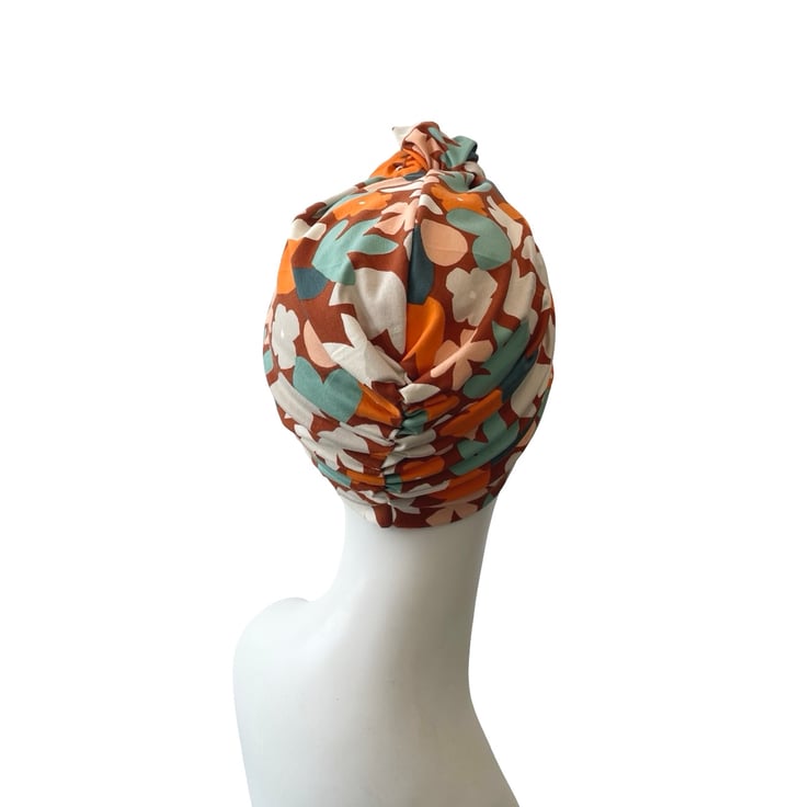 Please wash with mild detergent by hand washing or in a light load/delicates cycle on no more than 30 degrees. Lay turban hats flat to dry.