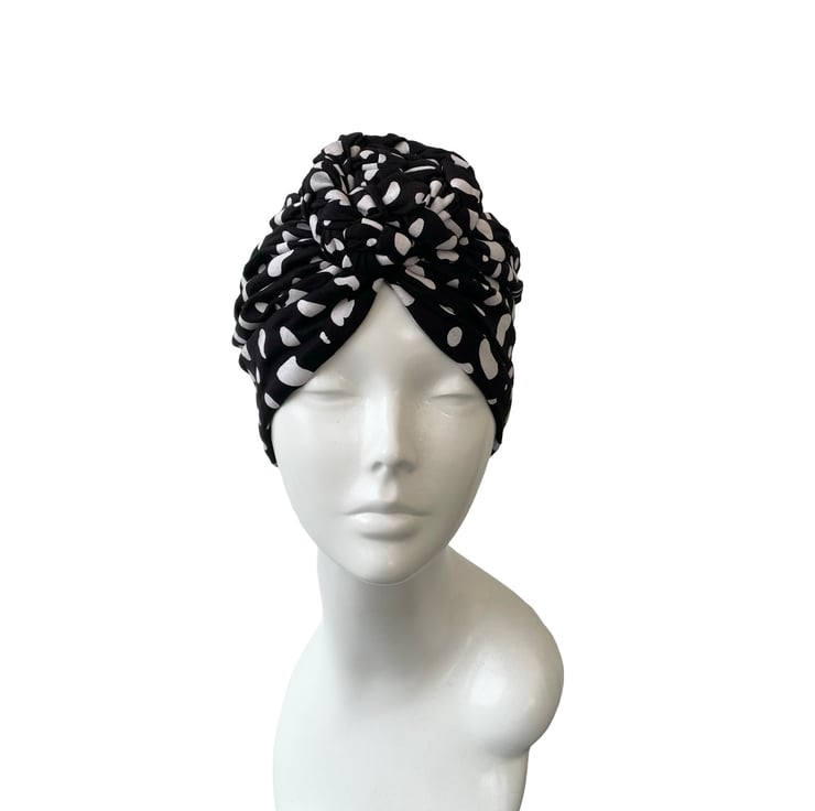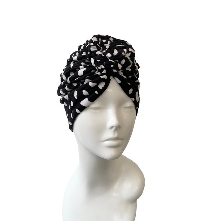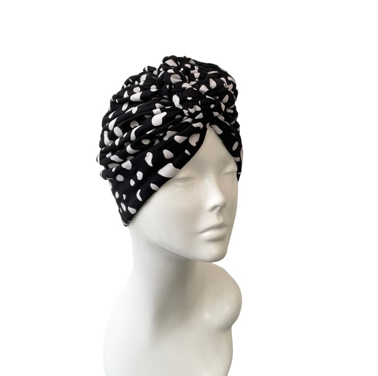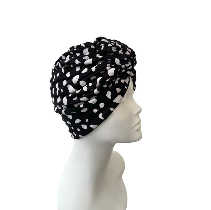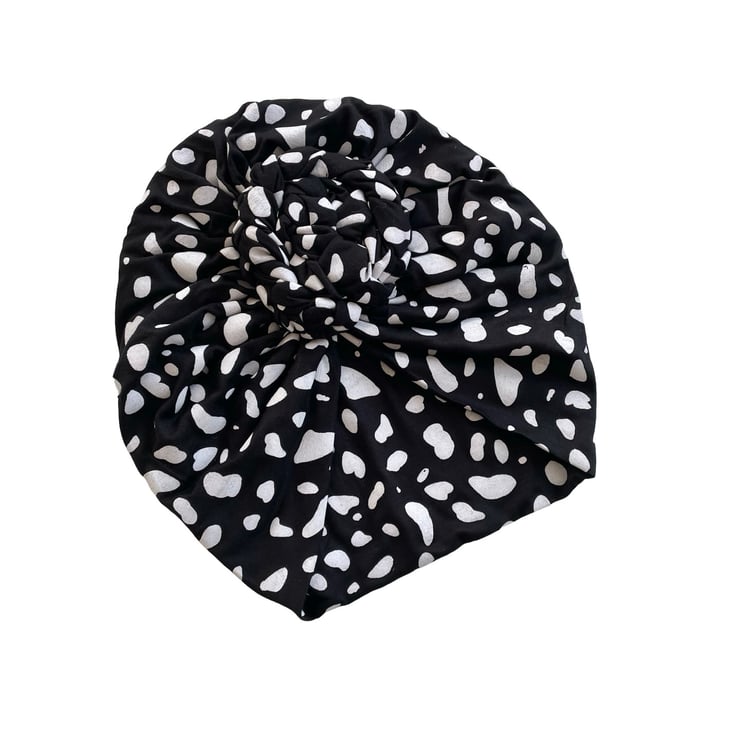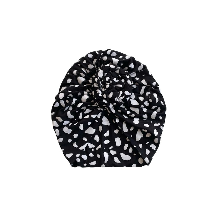 Black Droplet Print Chain Knot Turban for Women Handmade Stretchy Hair Turban