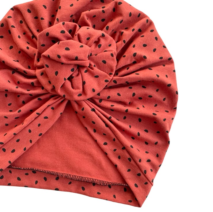 Please wash with mild detergent by hand washing or in a light load/delicates cycle on no more than 30 degrees. Lay turban hats flat to dry.