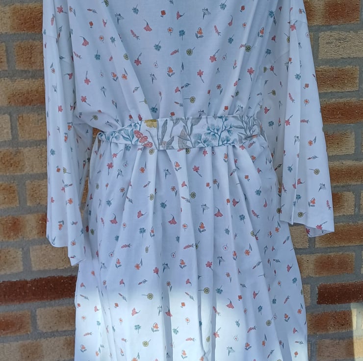 Upcycled bath robe dressing gown, this is made from a pre loved 100% cotton duvet cover, I have used fabric from both sides of the duvet to create this unique one of a kind bath robe.