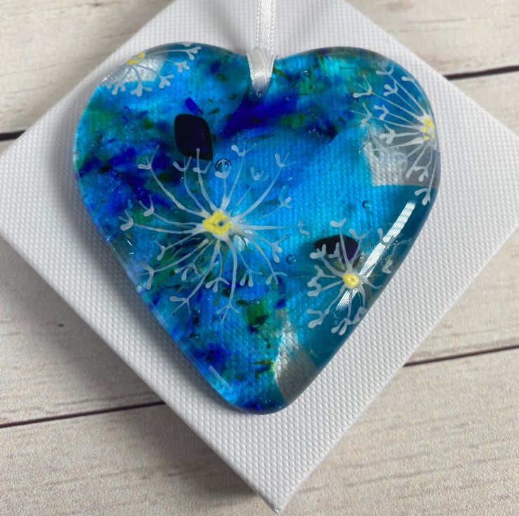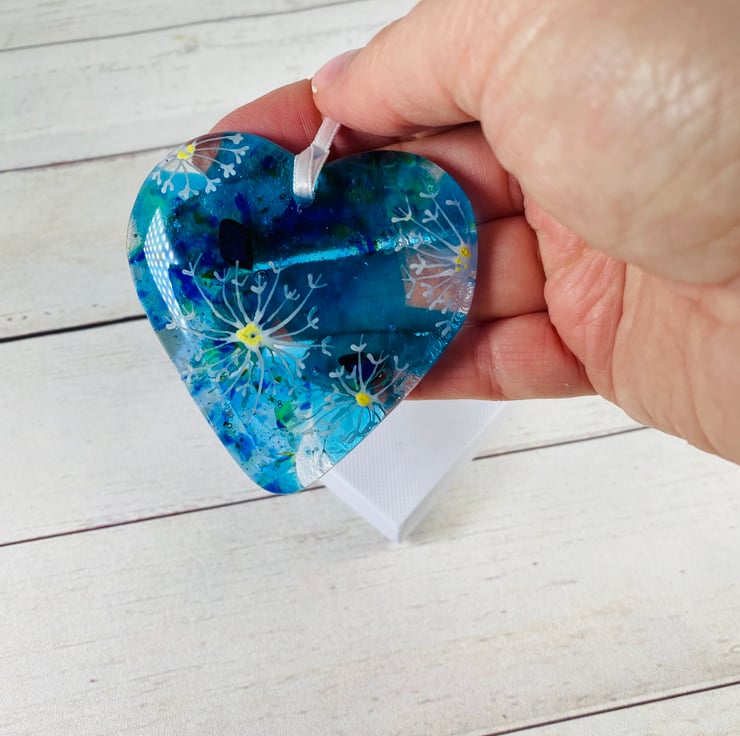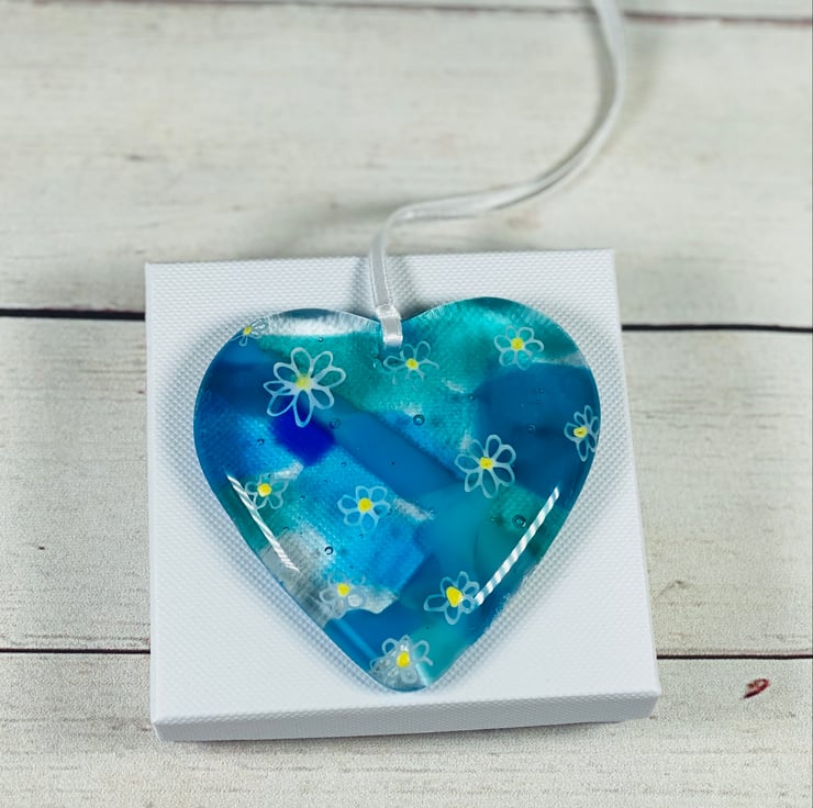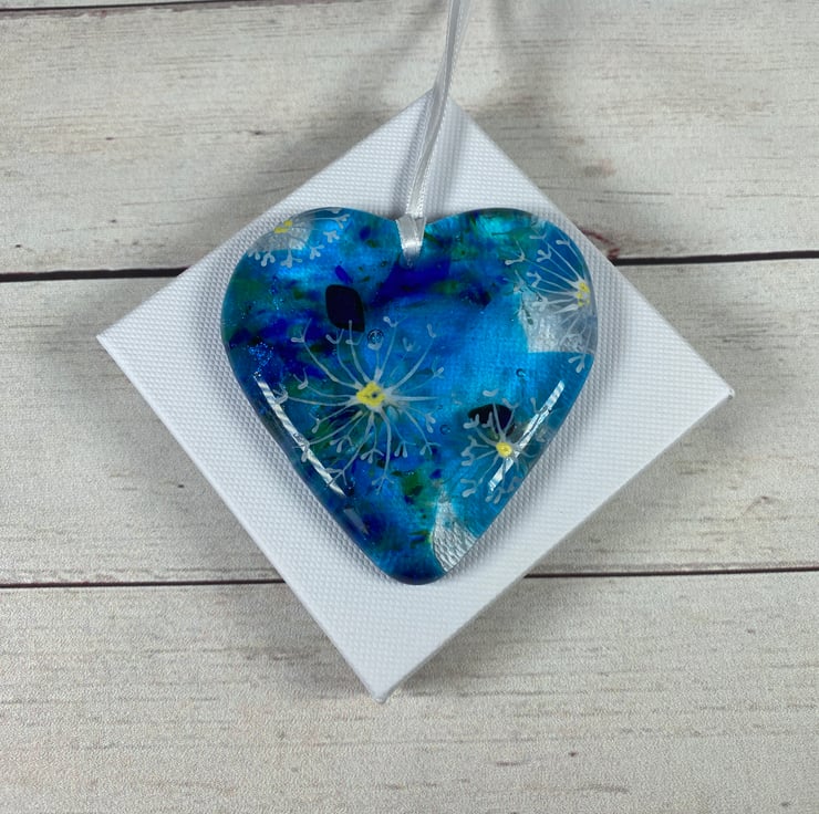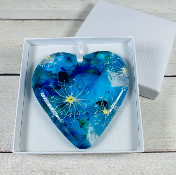 Gorgeous cast glass hanging heart . A perfect small gift that can be hung anywhere in the home .