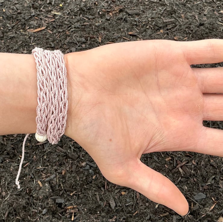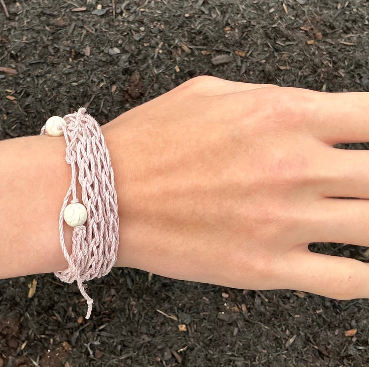 Hand Knitted Hemp Wrap Bracelet. Pale Pink Bracelet.