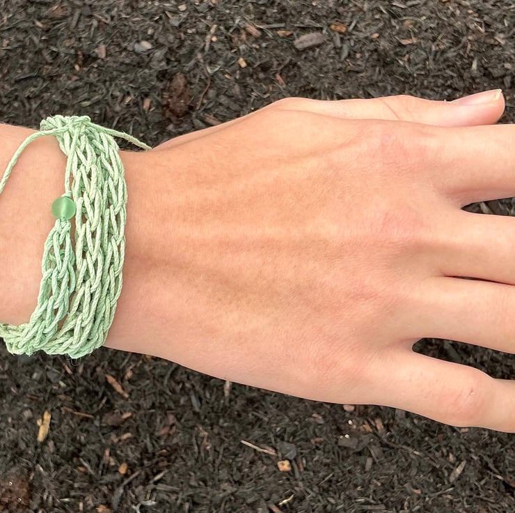 Hand Knitted Hemp Wrap Bracelet. Pale Green Bracelet.