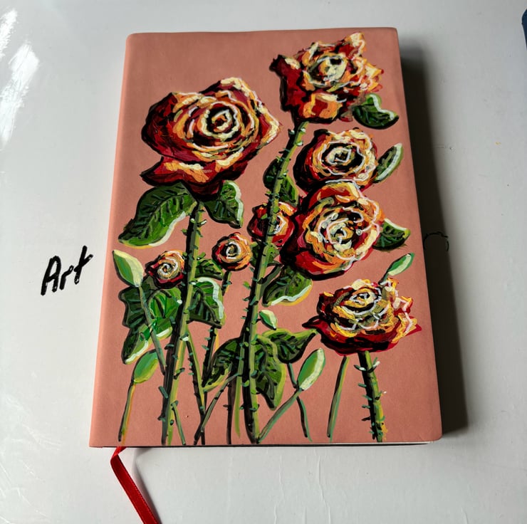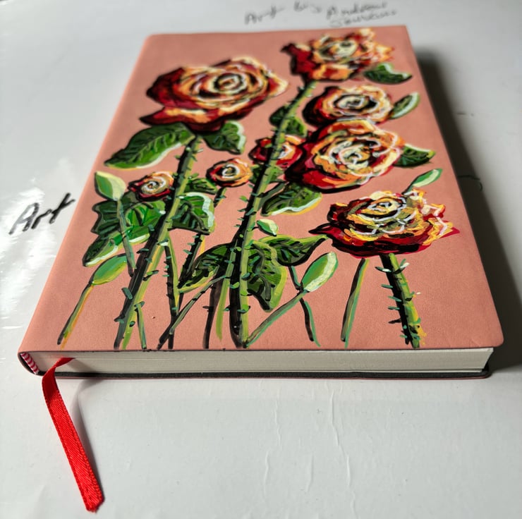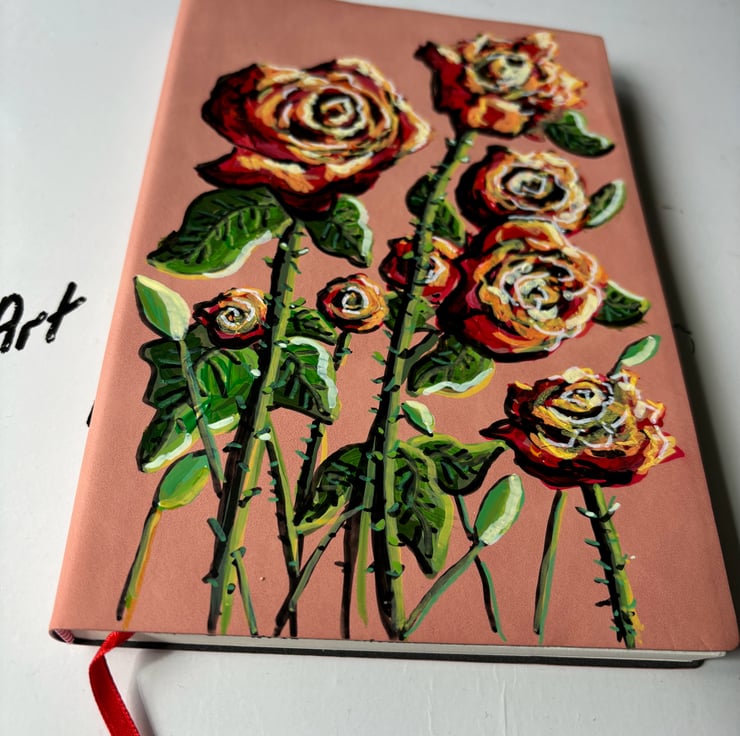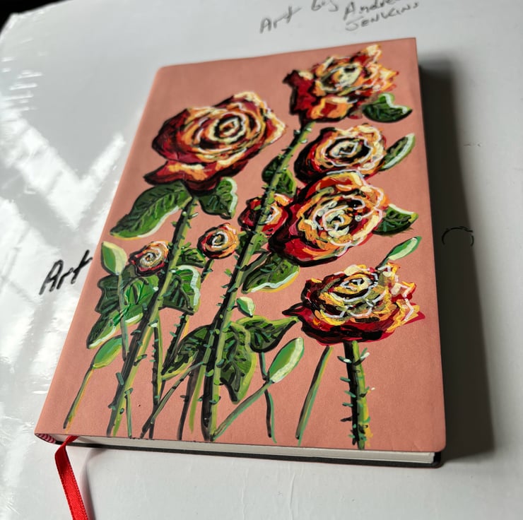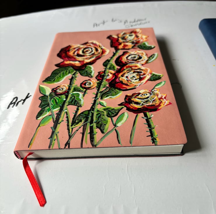 A hand painted and sealed faux leather bound journal by Andrew Jenkins
