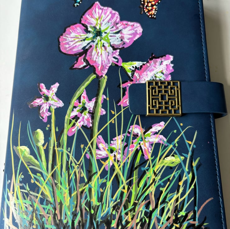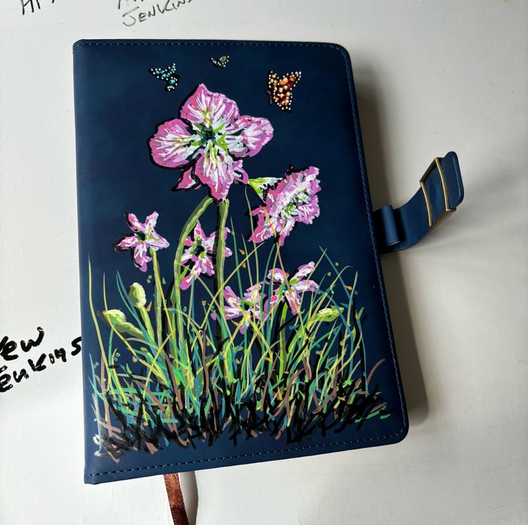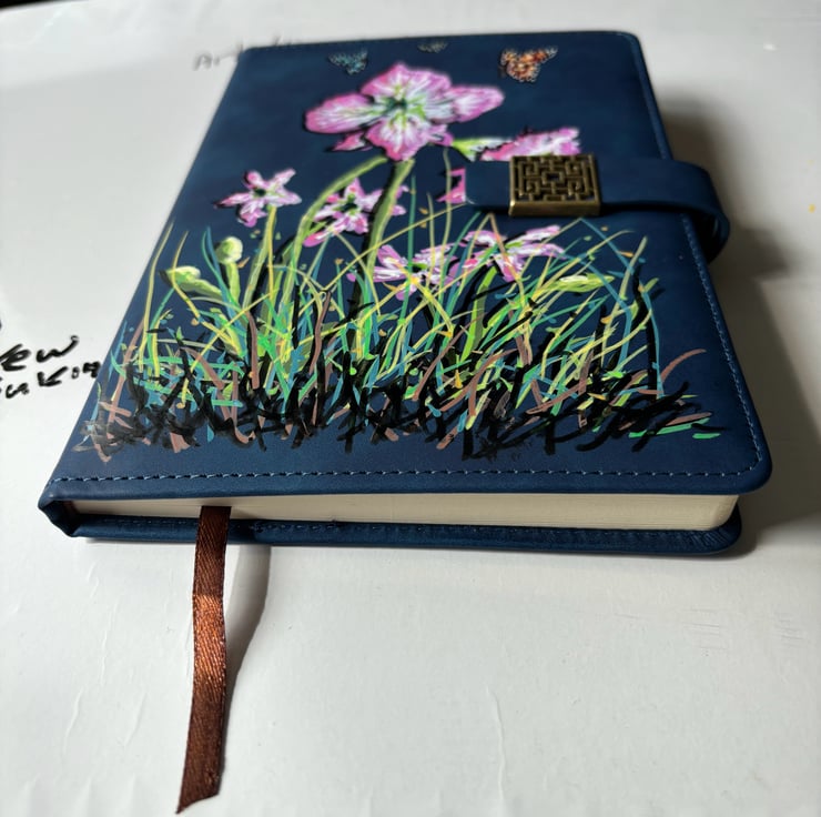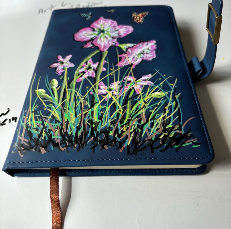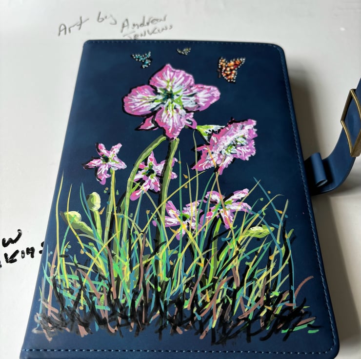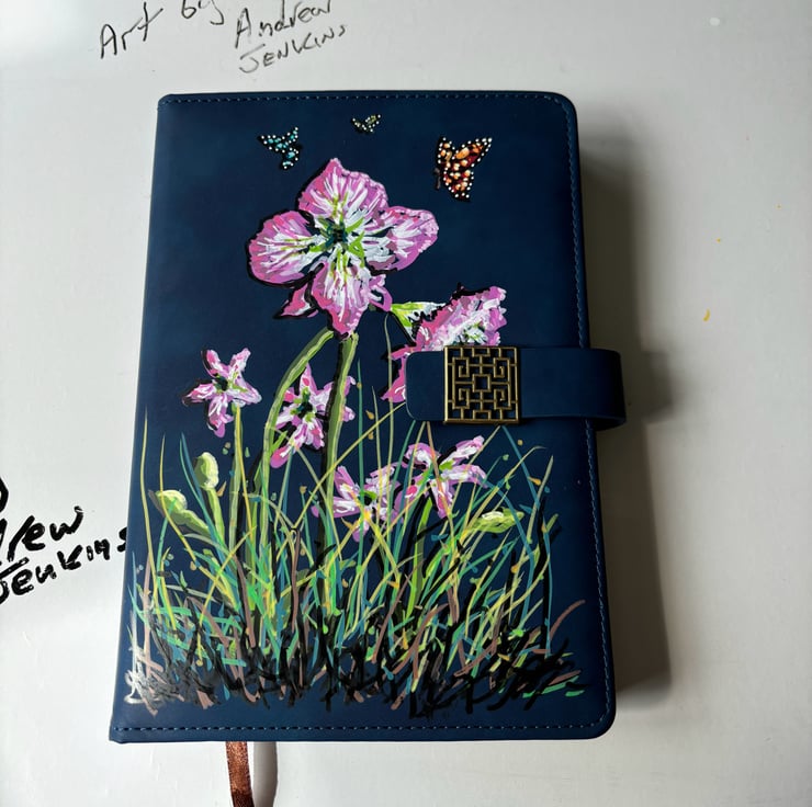 A hand painted and sealed faux leather bound journal with pen by Andrew Jenkins