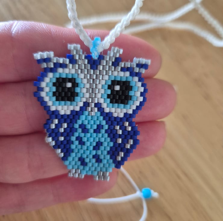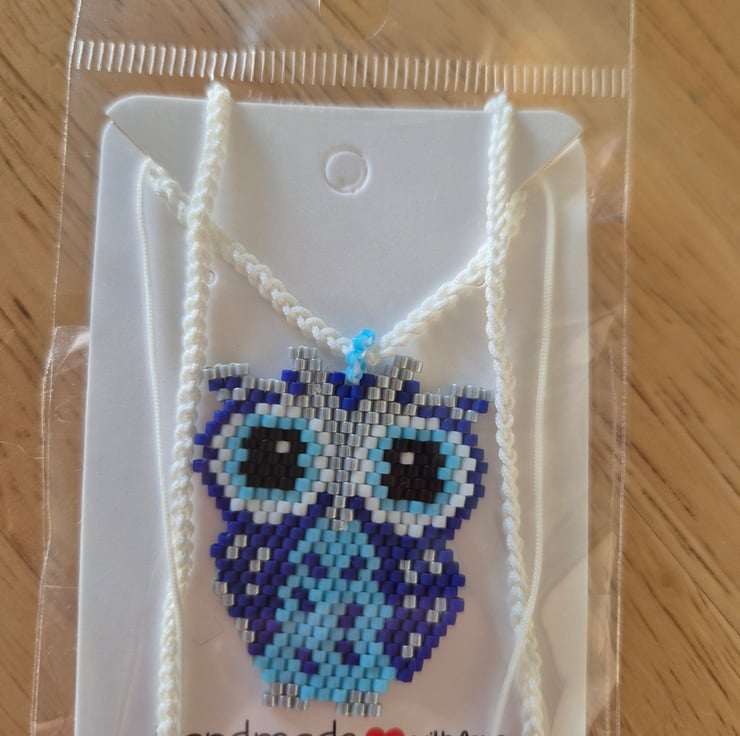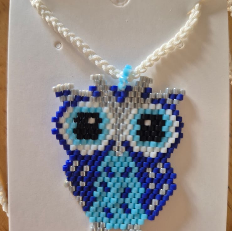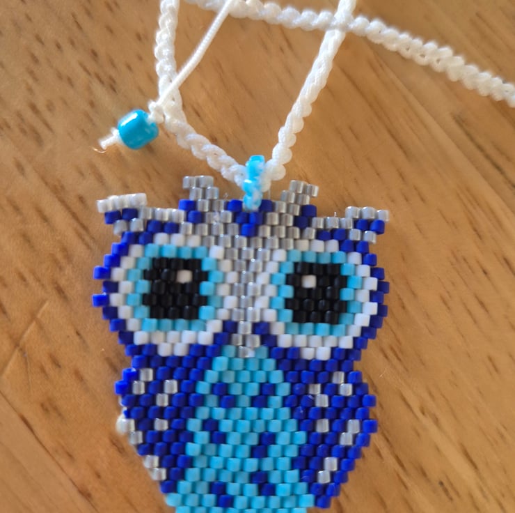 Owl necklace made with myuki delica beads, With adjustable necklace rope both sports and very style.