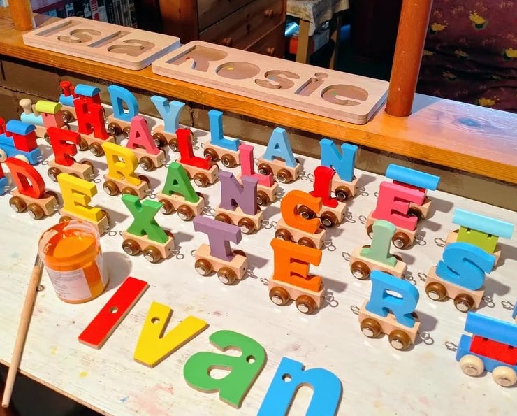 Personalised Wooden Name Train – Handcrafted letters in the Uk