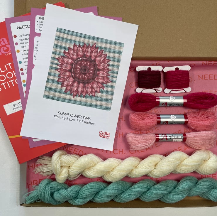 Stitch your way to calm with this modern floral cross stitch kit! The Sunflower Pink Cross Stitch Kit by Calla Rae Studio is a fun and relaxing DIY embroidery gift, perfect for beginners and seasoned stitchers alike.