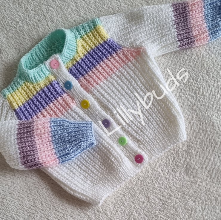 Confetti is a knitting pattern for you to make a cute cardigan for your little one.