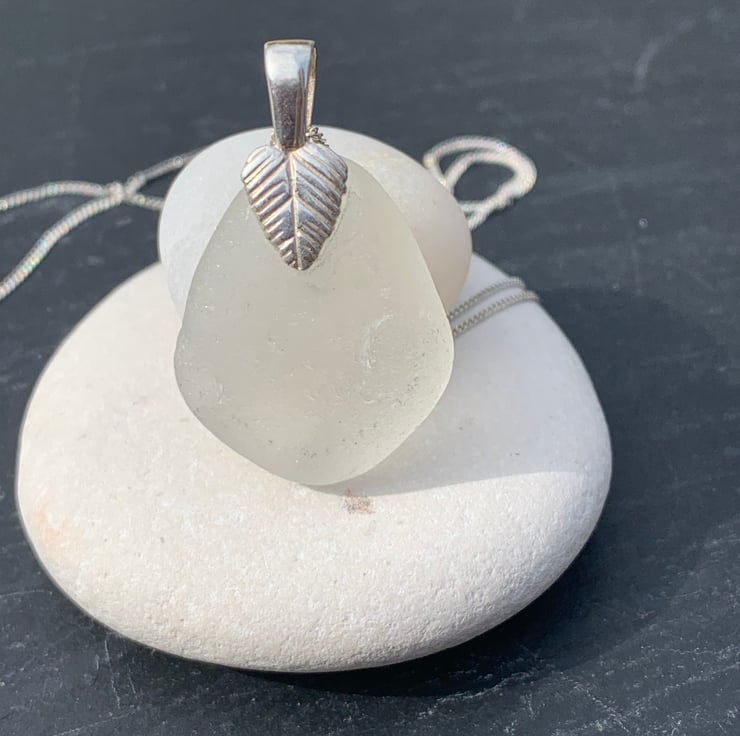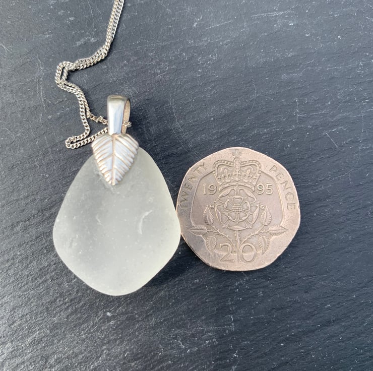 A Sterling silver leaf shaped bail is glued into place to enable the fine 18/20inch chain to be secured to it.