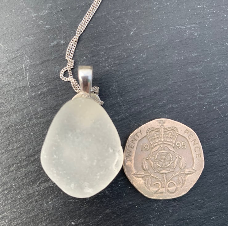 A perfectly symmetrical, classic kite shaped piece of seaglass is just asking to be made into a pendant? My first thought on finding this piece. Hope you enjoy it.