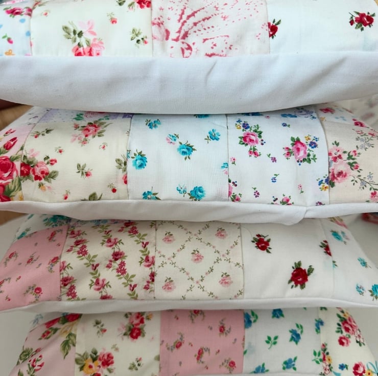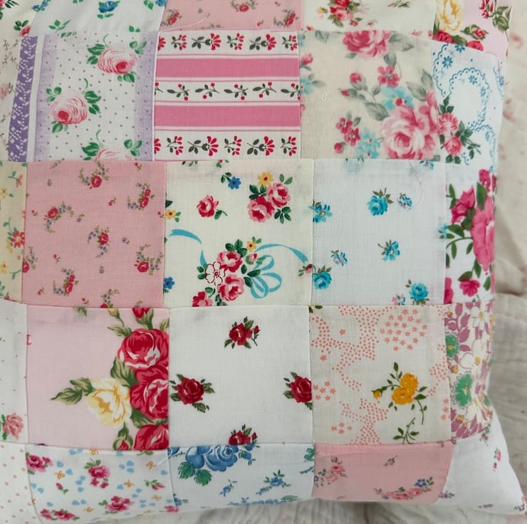 Gorgeous cushion made with a pretty floral cotton fabric for the front and a white cotton fabric for the back with an envelope opening. It measures 12” x 12”