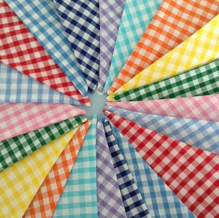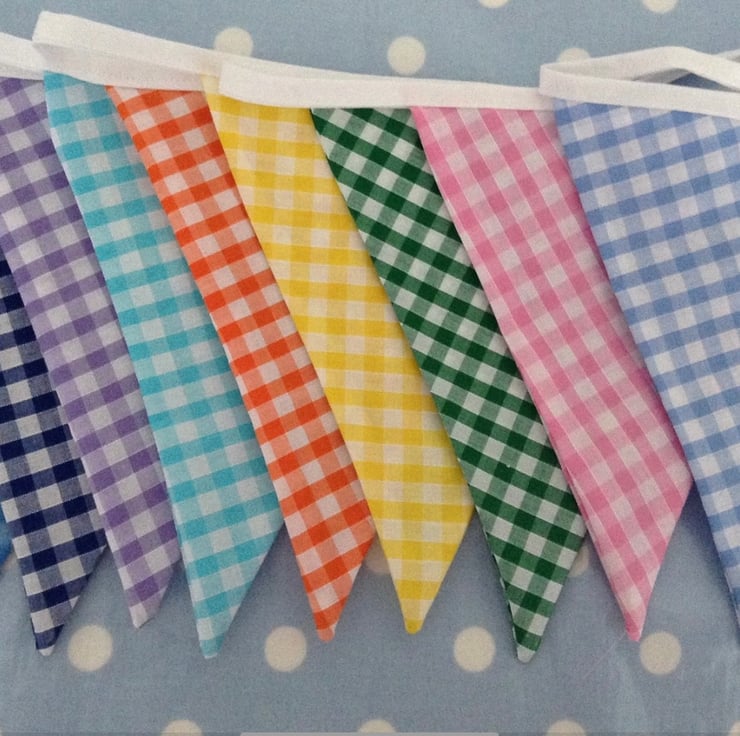 3m, 5m, 10m Gingham Fabric Bunting, Party Flag, Cotton Fabric Bunting
