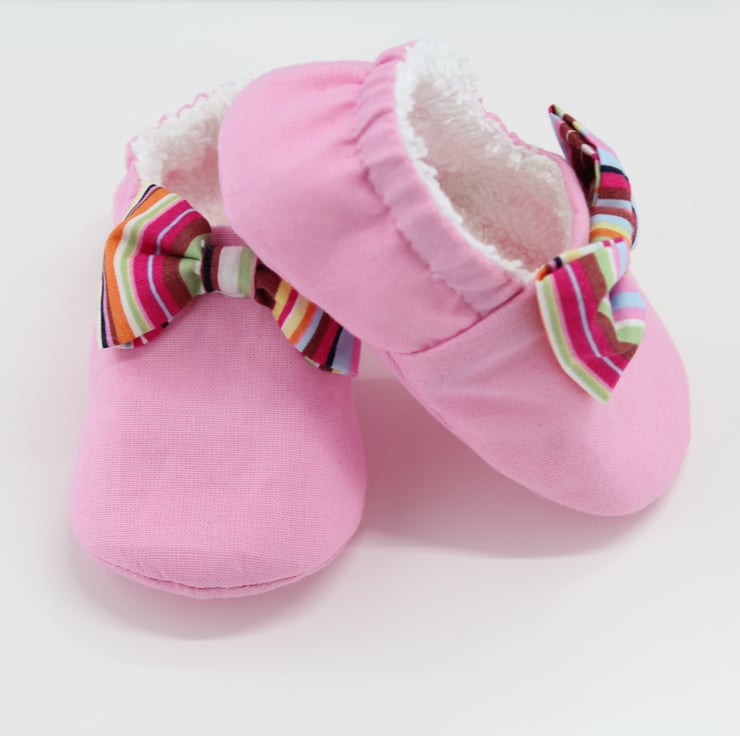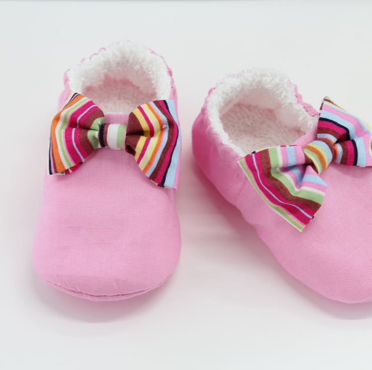 These little pink shoes have been made to fit a 3-6 month baby, (UK size 2) length of sole is 11.5 CM