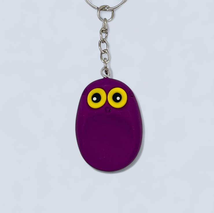 This adorable purple worry stone owl is handcrafted from polymer clay using my unique design. It is a lovely plum purple colour. The owl has an indentation on its tummy and comes with a chain and a sturdy split ring. Its use as a meditation tool or grounding aid makes it a thoughtful gift for anyone needing comfort or as self-care treat for yourself.