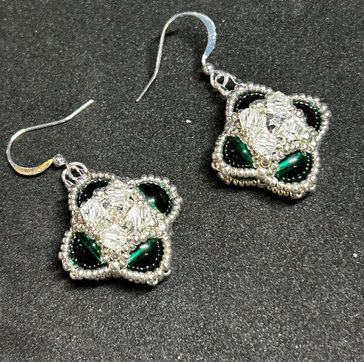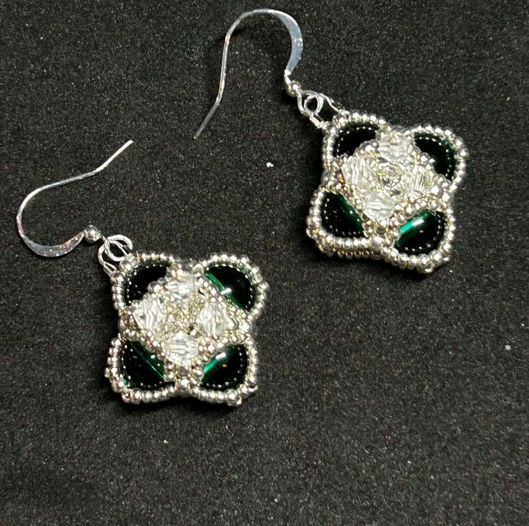 Sparkly Four Leaf Clover handmade crystal and seed bead necklace and earrings se