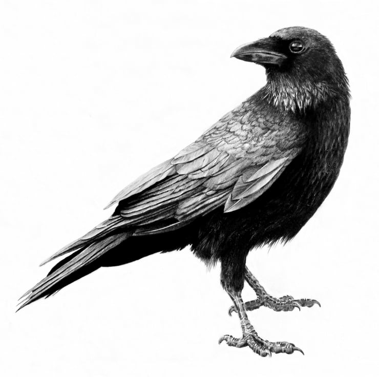 Charcoal pencil crow, beautifully reproduced on this satin finish white card. From my own original hand drawn artwork, gift to a bird lover or frame as a mini print for a gallery wall.