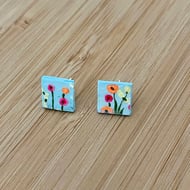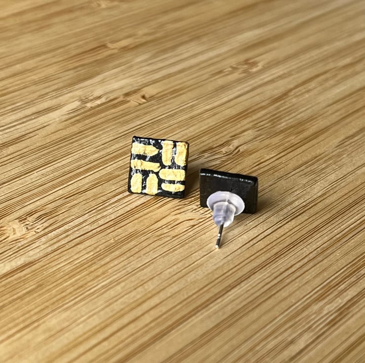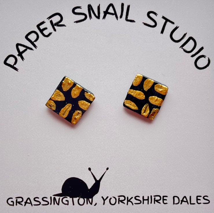 Sweet little square paper earrings in Golden Bronx 4 Square Design on Black. Individually created and painted so no two are identical.