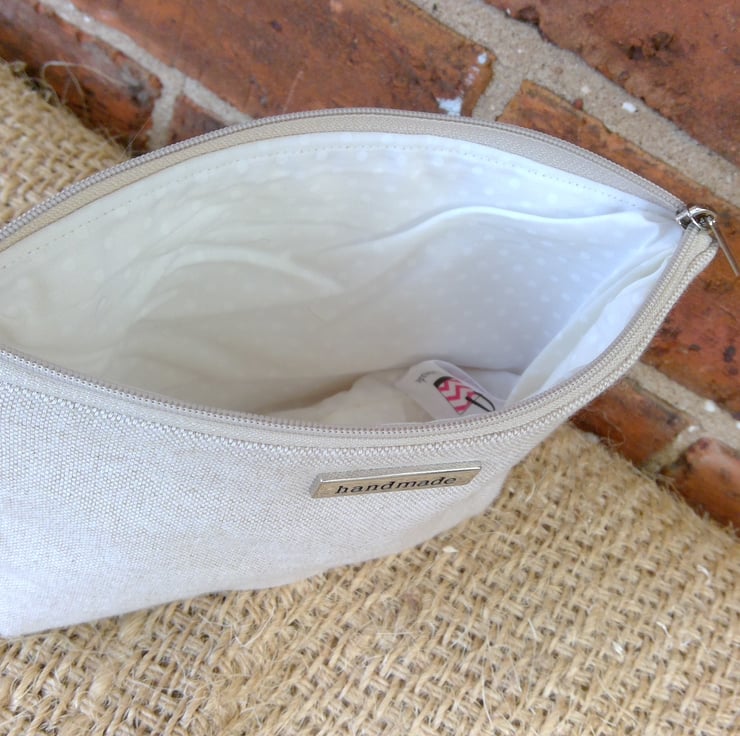 Plain Linen Look Zip Pouch