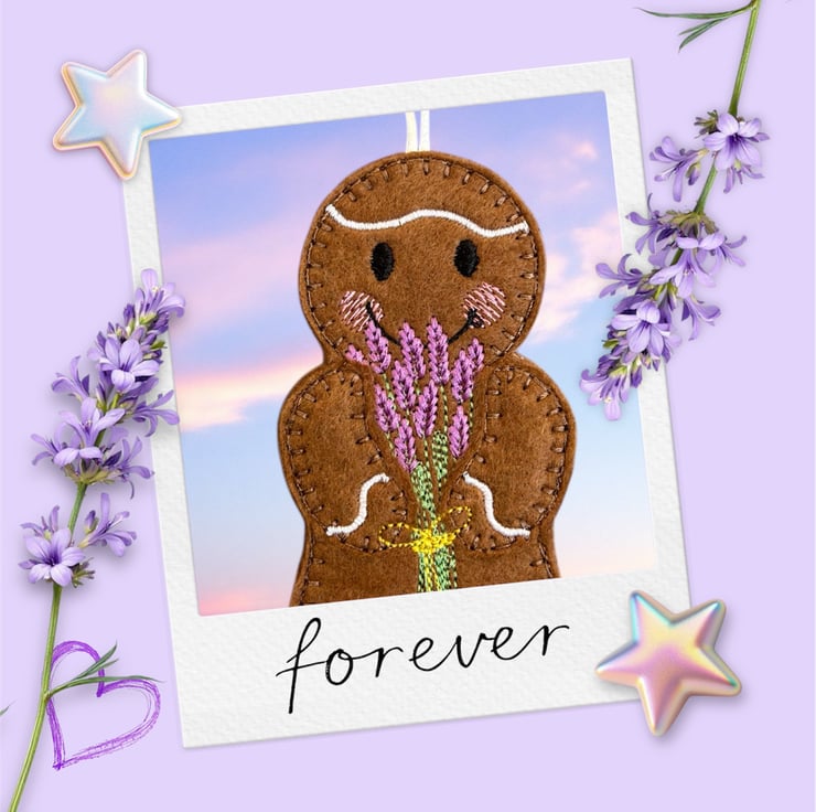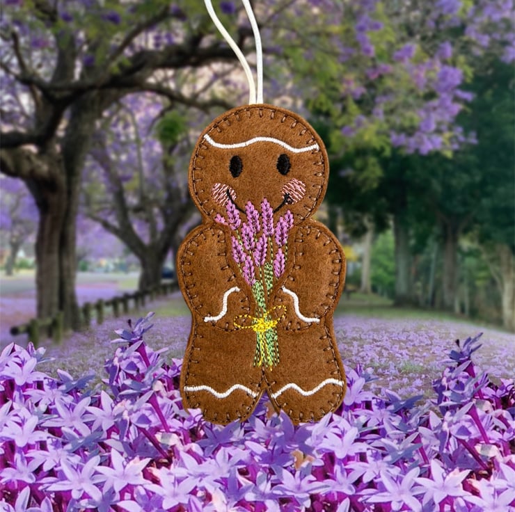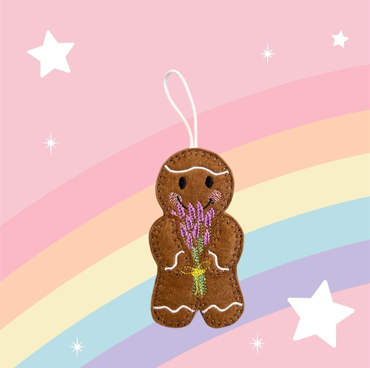 Handmade embroidered gingerbread man.