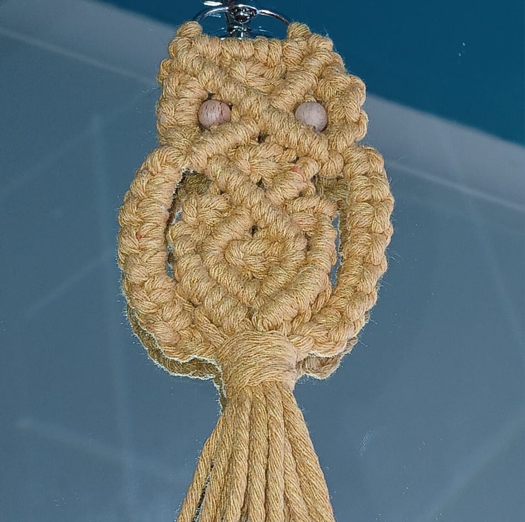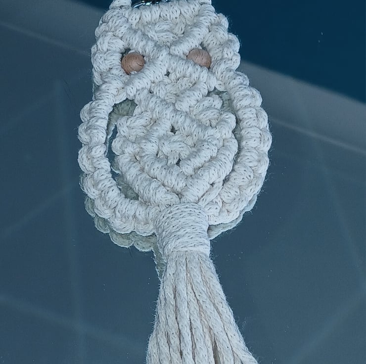 Handmade Macrame Owl keyring available in 3 colours. Please state which colour you would like.