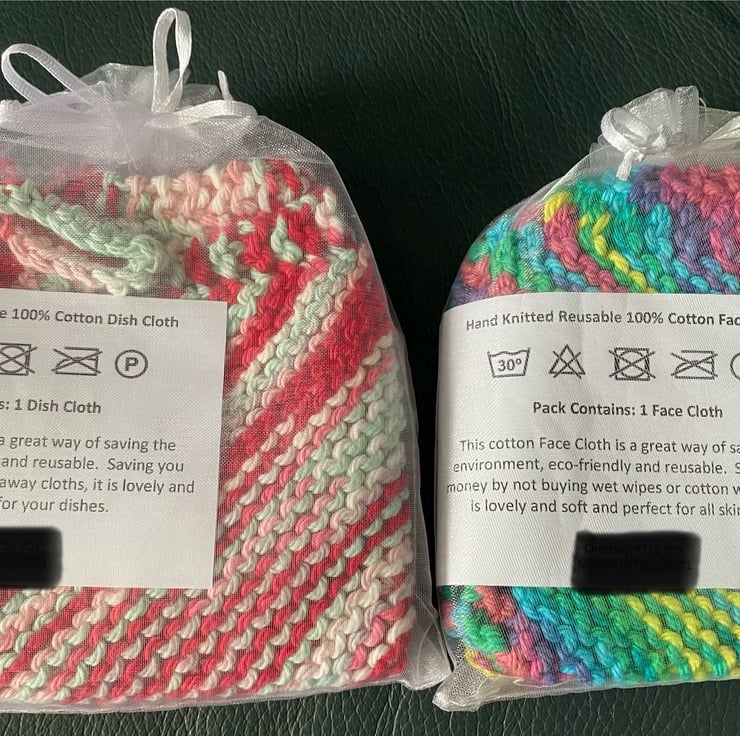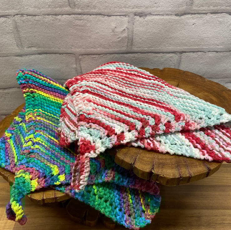 Hand Knitted Reusable 100% Cotton Dish Cloth with hanging loop