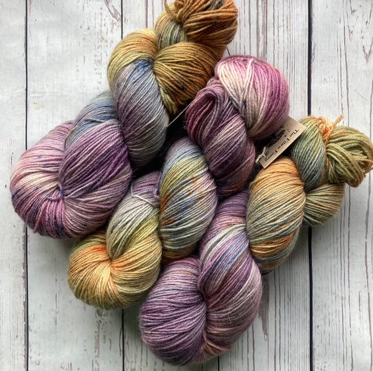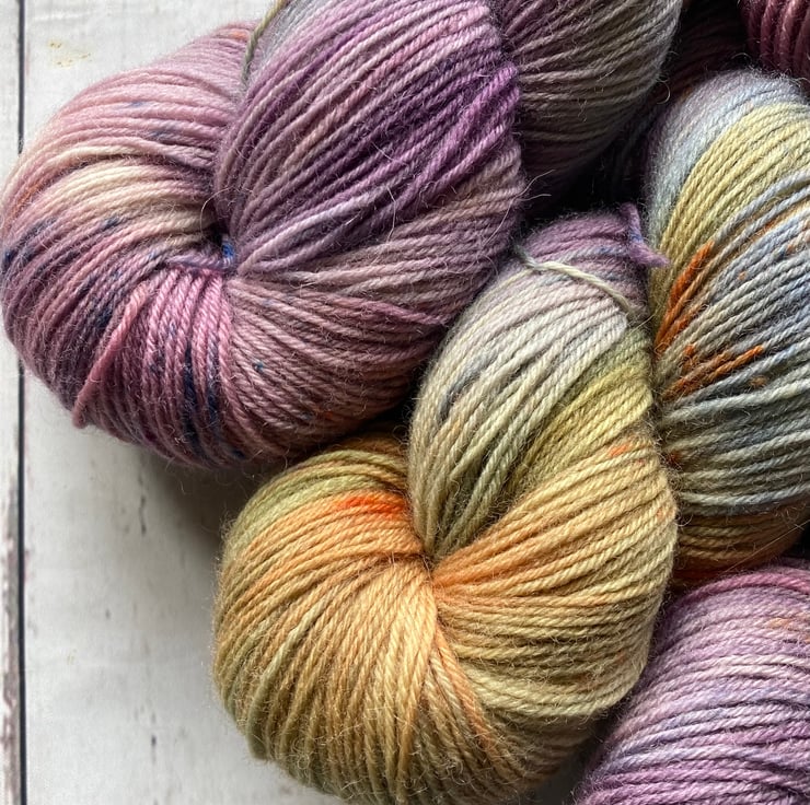 Gorgeous BFL 4ply yarn approx 400m, hand dyed by me.