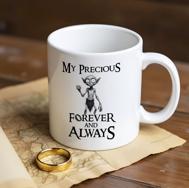 Designed with love and a touch of Middle-earth charm, this mug makes a thoughtful gift for newlyweds, engaged couples, or anyone who cherishes their “Precious.” Whether it's morning coffee or evening tea, this mug will remind the recipient of their unbreakable bond - just like the One Ring, but without the whole dark-lord complication!