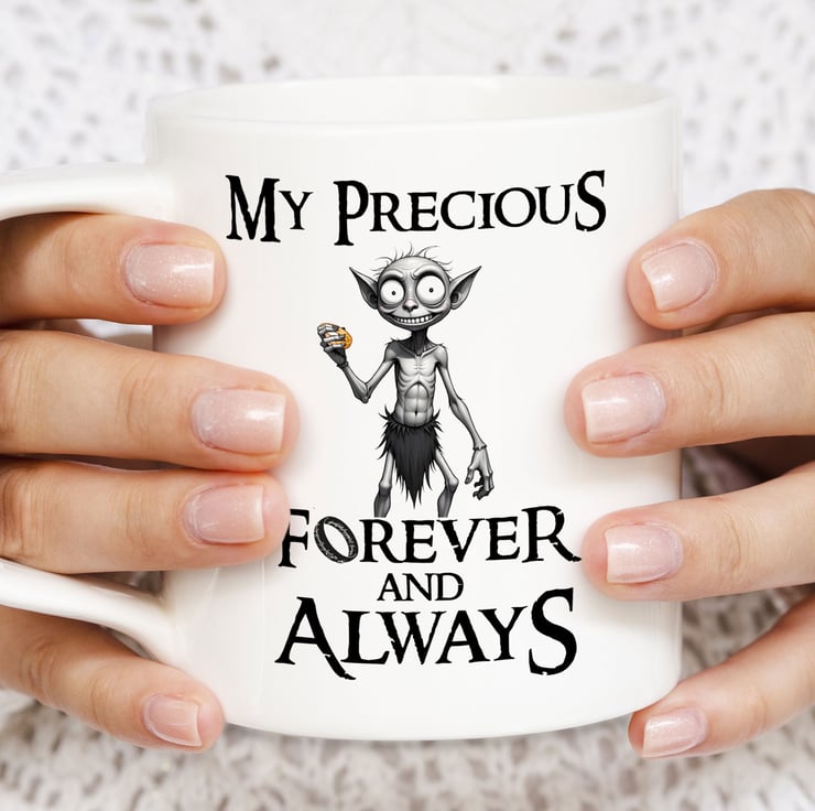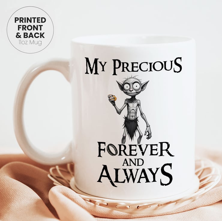 Unite love and fantasy with this beautifully designed mug - a quirky wedding gift for anyone who believes their partner is their “Precious Forever and Always.”