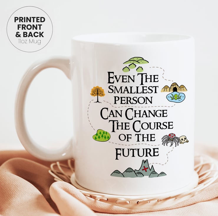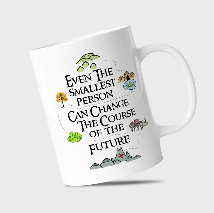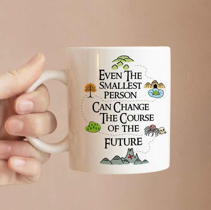 Start your day with a sip of fantasy and a touch of wisdom. This Lord of the Rings mug features the iconic quote, "Even the smallest person can change the course of the future", reminding us that big things often come in small packages - just like this mug.