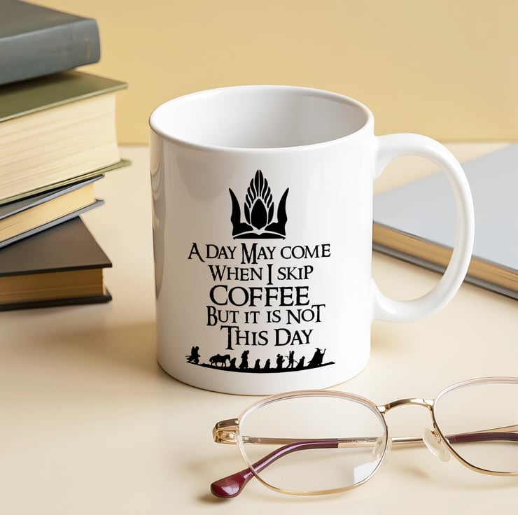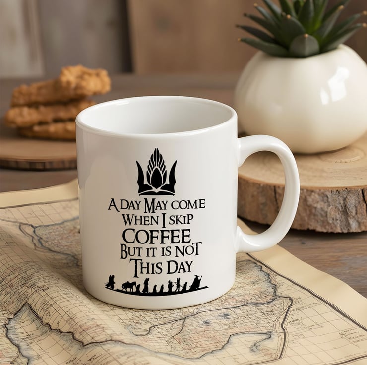 This mug a humorous nod to one of Aragorn's iconic speeches in Middle-earth. Ideal for gifting to Tolkien fans, coffee lovers, or anyone who refuses to surrender to early mornings!