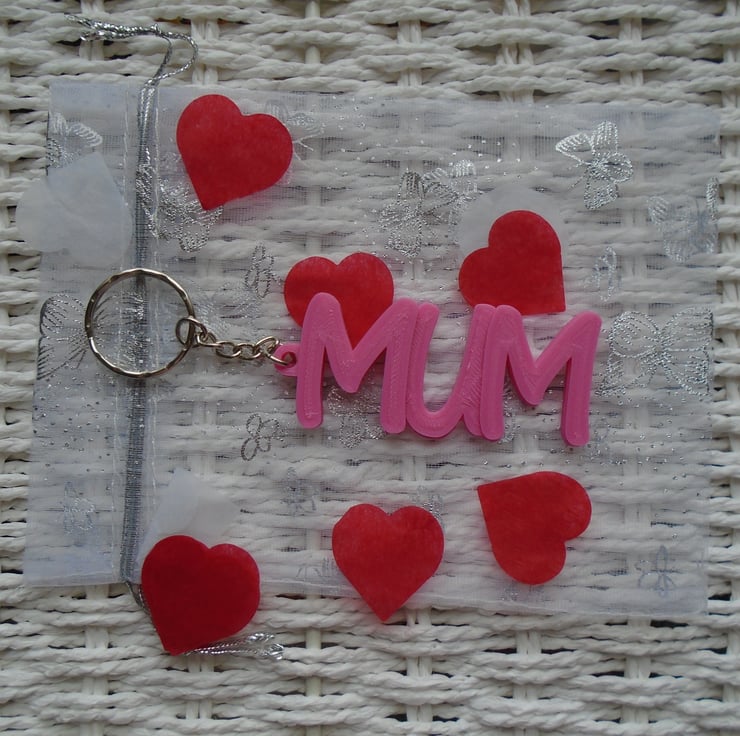 3D Printed keyring size with chain 12 cm x 3 cm sent with free organza bag and paper confetti hearts lovely gift idea.